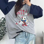 可愛咖啡貓撞色運動上衣 (黑色) (MQ739黑)
